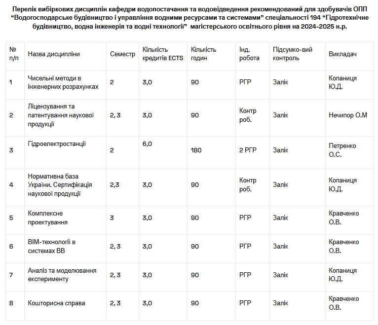 Магістри. Водогосподарське будівництво і управління водними ресурсами та системами. ОСВІТНЬО-ПРОФЕСІЙНА ПРОГРАМА Освітньо-професійна програма на 2025 рік Стандарт вищої освіти України Нормативні документи Інформація за минулі роки На головну сторінку кафедри НА СТОРІНКУ МАГІСТРИ