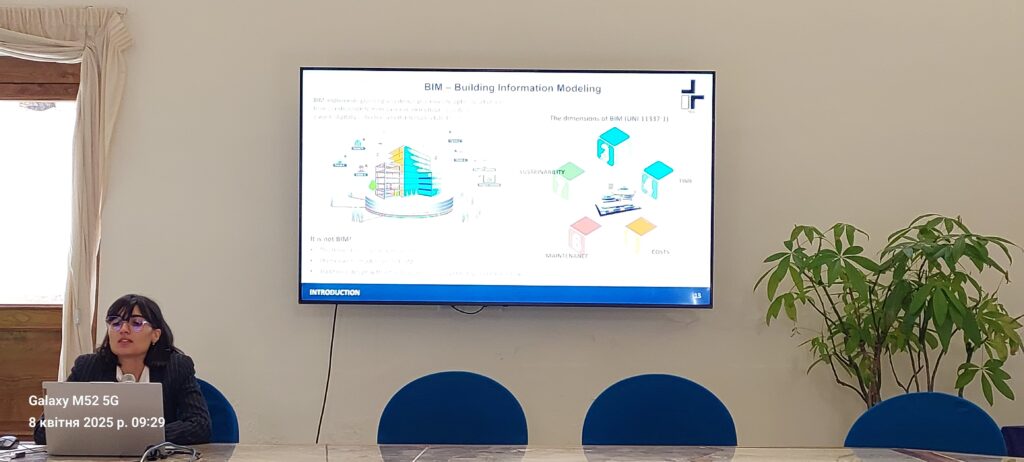На кафедрі водопостачання та водовідведення 28.05.2025 р. відбувся семінар за результатами відрядження в університет Санніо в Беневенто (Італія) на тренінг по програмі мобільності в рамках проєкту ERASMUS+ The Bridge «Подолання розриву між університетом і промисловістю: інноваційна магістерська навчальна програма, що підтримує розвиток зелених робочих місць і цифрових навичок в українському будівельному секторі». Професор Олена Дупляк і доцент Олександр Кравчук поділилися набутими знаннями зі створення цифрової моделі будівлі з колегами і студентами, розповіли про технології навчання, що застосовують італійські колеги. Викладачі кафедри відмітили, що останнім часом значно зростає запит працедавців на фахівців, що володіють БІМ технологіями. Впровадження такого досвіду в навчальний процес дозволить забезпечити додаткові цифрові навички студентам і підвищить їх конкурентноздатність на ринку праці.