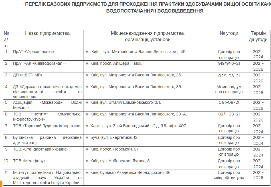 практика студентів на кафедрі водопостачання та водовідведення