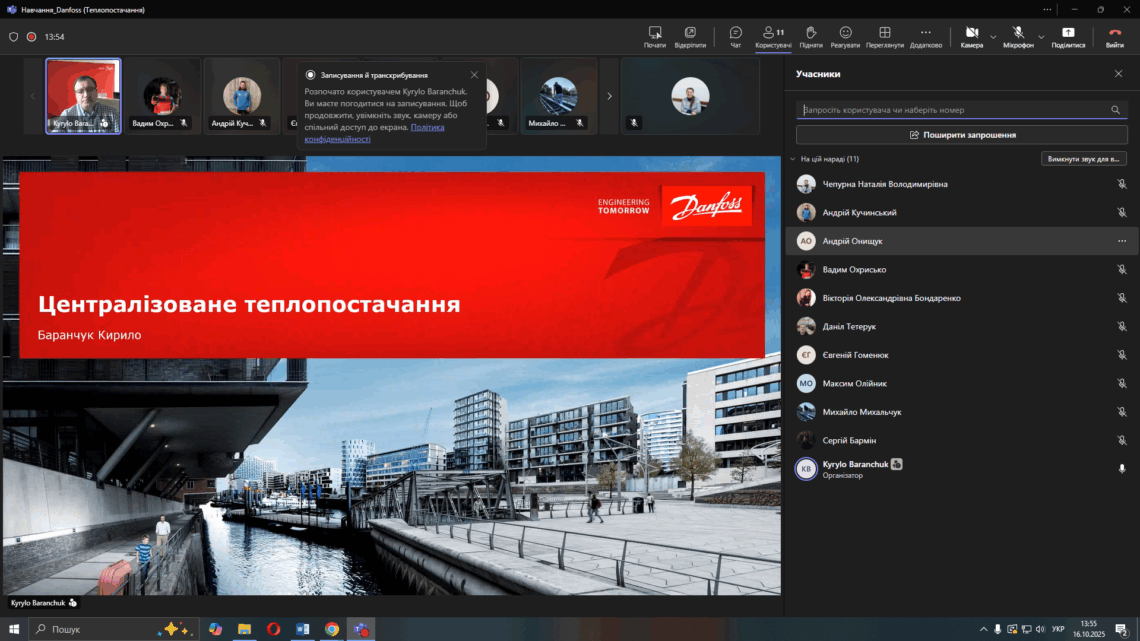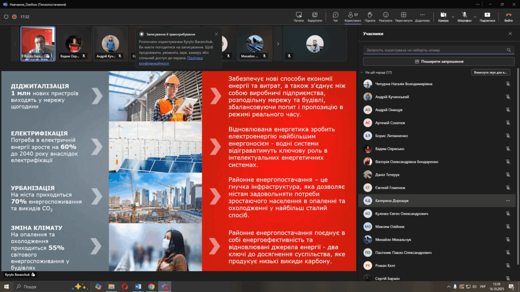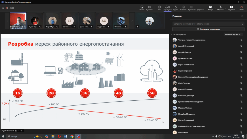 16 жовтня 2025 року за запрошенням доцента кафедри теплотехніки Наталії ЧЕПУРНОЇ представник Компанії ДАНФОСС УКРАЇНА Кирило БАРАНЧУК провів відкриту лекцію-вебінар для студентів ФІСЕ, які навчаються за спеціальністю 192 Будівництво та цивільна інженерія та 144 Теплоенергетика.