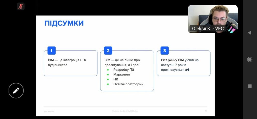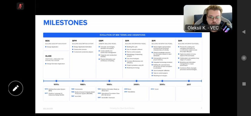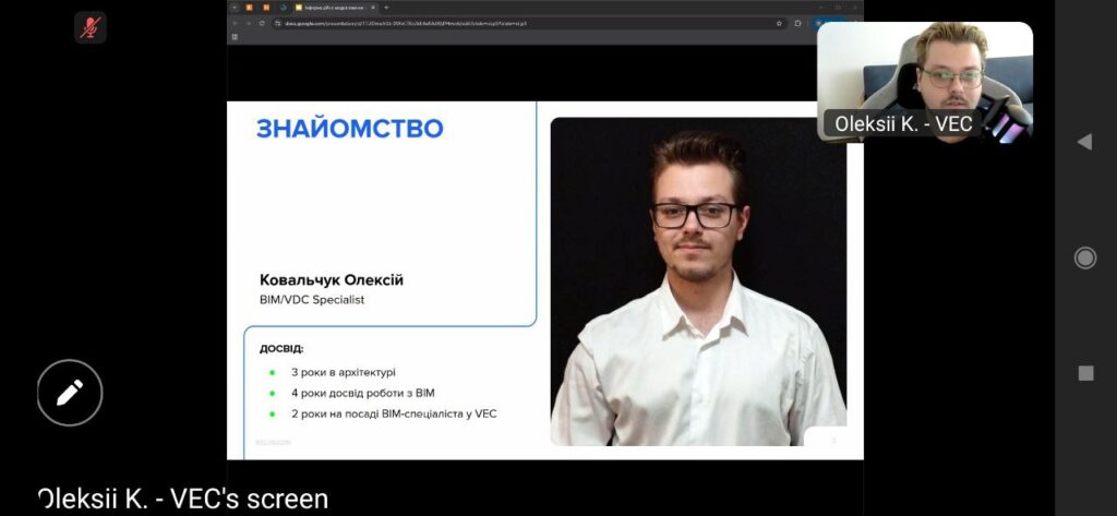 15 жовтня 2025 року представники компанії «ВЕК-ЮА» провели відкриту лекцію для студентів першого курсу спеціальностей G 19. Будівництво та цивільна інженерія, G 4. Енерговиробництво, G 16. Гірництво та нафтогазові технології факультету інженерних систем та екології на тему “Інформаційне моделювання: історія створення та розвитку BIM”.