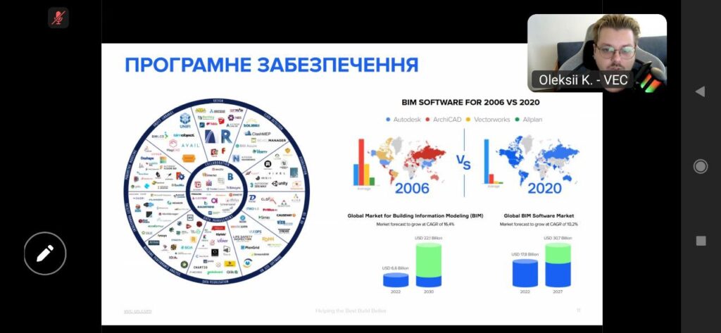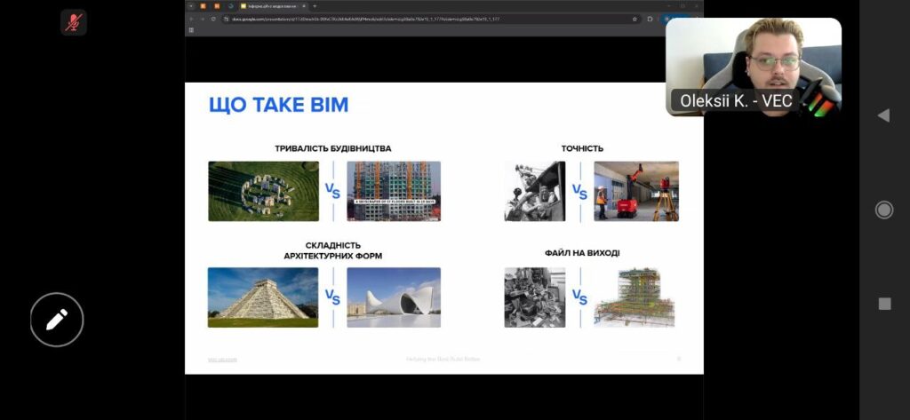 Спікер Олексій Ковальчук познайомив наших першокурсників з історією розвитку ВІМ, перевагами застосування і особливостями BIM-технологій, профілем компанії, своїм досвідом роботи та можливостями, що відкриваються перед фахівцями, які опанували ці технології та працюють в галузі.