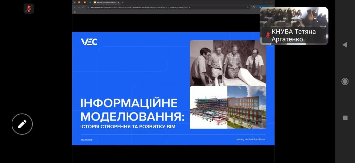 15 жовтня 2025 року представники компанії «ВЕК-ЮА» провели відкриту лекцію для студентів першого курсу спеціальностей G 19. Будівництво та цивільна інженерія, G 4. Енерговиробництво, G 16. Гірництво та нафтогазові технології факультету інженерних систем та екології на тему “Інформаційне моделювання: історія створення та розвитку BIM”.
