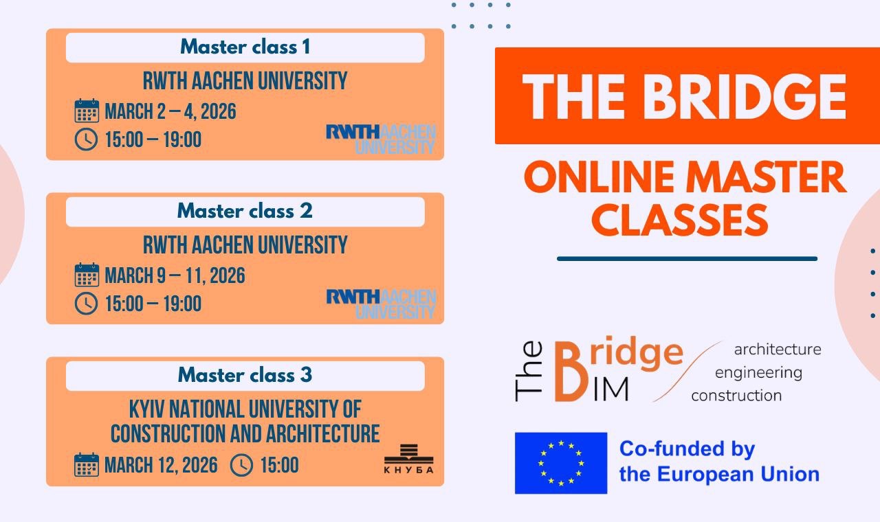Elementor #263394 Студенти КНУБА та міжнародні партнери створюють нову концепцію розвитку Макарова 10.02.2026 Читати далі » ТHE BRIDGE ОНЛАЙН МАЙСТЕР КЛАСИ З БУДІВЕЛЬНО-ІНФОРМАЦІЙНОГО МОДЕЛЮВАННЯ 16.12.2025 Читати далі » РЕЗУЛЬТАТИ VІ МІЖНАРОДНОЇ НАУКОВО-ПРАКТИЧНОЇ КОНФЕРЕНЦІЇ «ERE-2025» 07.12.2025 Читати далі » МІЖНАРОДНА НАУКОВО-ПРАКТИЧНА КОНФЕРЕНЦІЯ «БУДМАЙСТЕРКЛАС-2025 29.11.2025 Читати далі » ПІДСУМКИ МІЖНАРОДНОГО НАУКОВО-ТЕХНІЧНОГО ФОРУМУ «АРХІТЕКТУРА, БУДІВНИЦТВО, ДИЗАЙН : ВИРОБНИЦТВО, ІНФОРМАТИЗАЦІЯ, МЕНЕДЖМЕНТ» 26.11.2025 Читати далі » На факультеті інженерних систем та екології відкрили Міждисциплінарну лабораторію інформаційного моделювання будівель і споруд 29.10.2025 Читати далі »