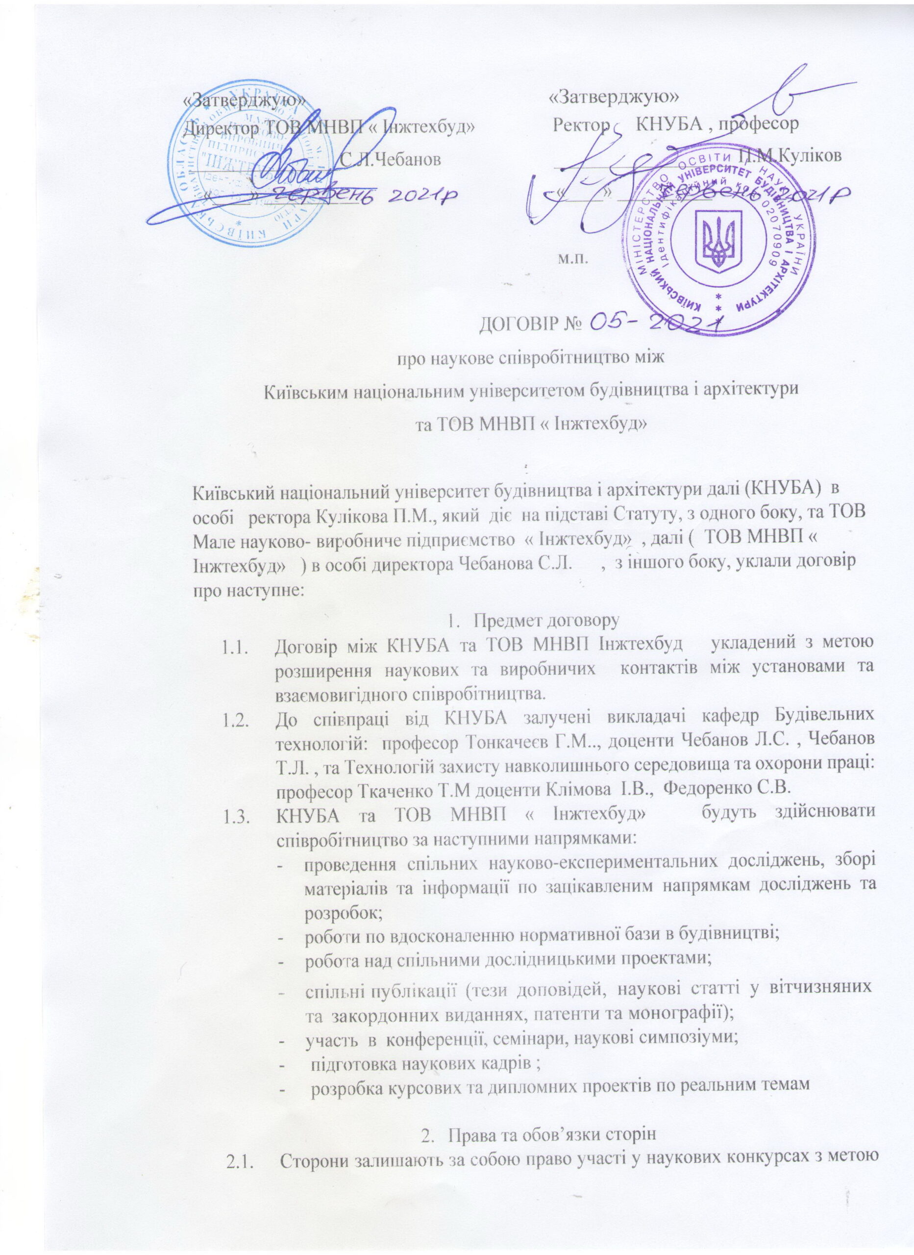 Договір про наукове співробітництво з ТОВ “ZINCO Україна”Договір ДоННАБА КНУБА 2021