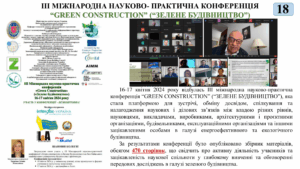 Клімова І., Мойсеєнко В. «GreenConstruction» («Зелене будівництво»). Київ: Київський національний університет будівництва і архітектури. 2025, с.135-139. https://repositary.knuba.edu.ua/server/api/core/bitstreams/a73557c4-0b96-44bc-8583-3d3650422754/content?authentication-token=eyJhbGciOiJIUzI1NiJ9.eyJlaWQiOiIxODc5NzBiNC0zOTZhLTQxOTAtYmY5Yy02NDNhNWM2MmM5NzEiLCJzZyI6W10sImV4cCI6MTc0NzY1MzQxNywiYXV0aGVudGljYXRpb25NZXRob2QiOiJwYXNzd29yZCJ9.KZih3DP-50xDvBWg4hhQt7rJf9F5p5W_T3qrSHKkjfc