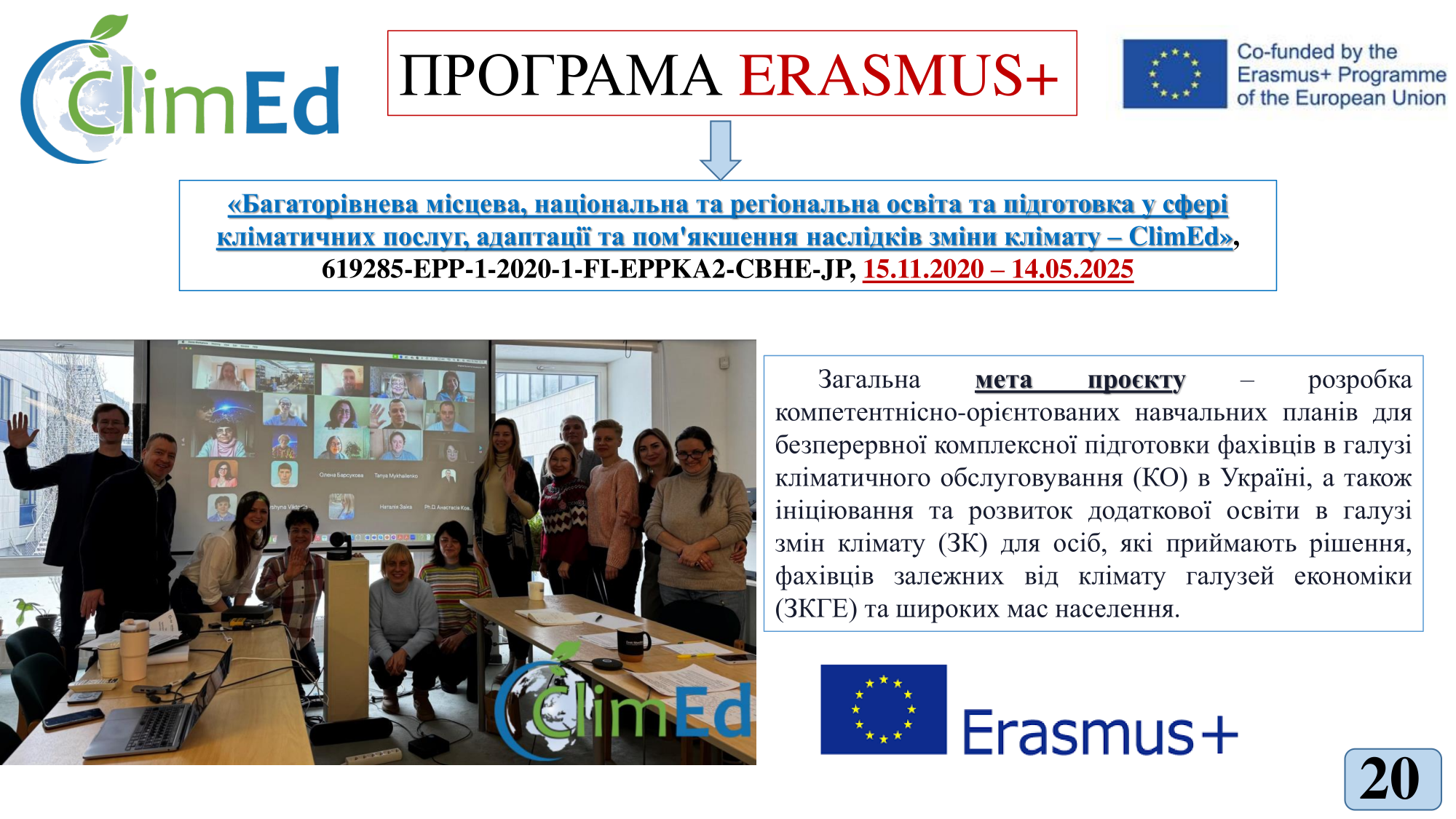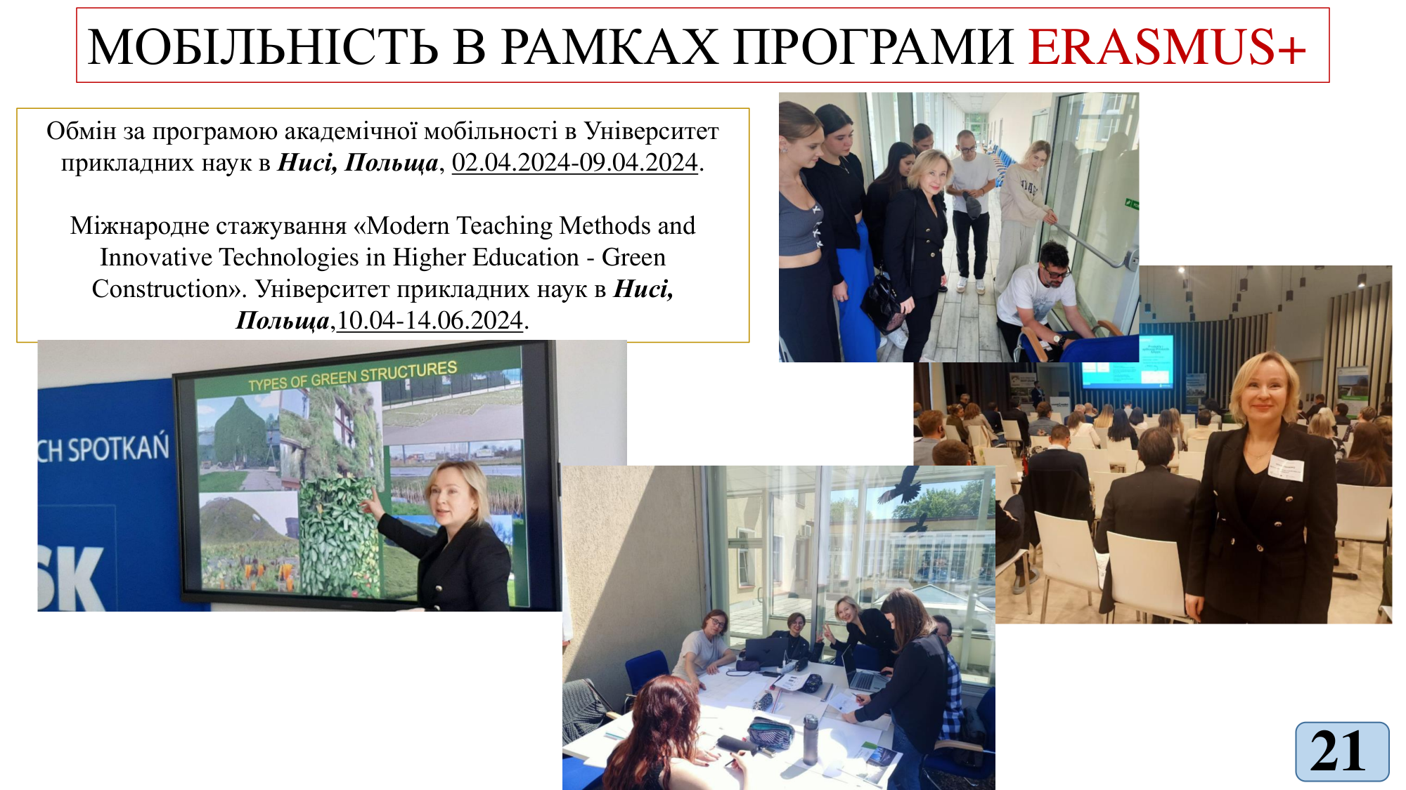 - Awareness of green building as a component of climate change adaptation. Kravchenko M., Tkachenko T., Voloshkina O., Vasylenko L. The Second International Conference on Climate Services, April 16-18, 2025, Odesa, Ukraine.