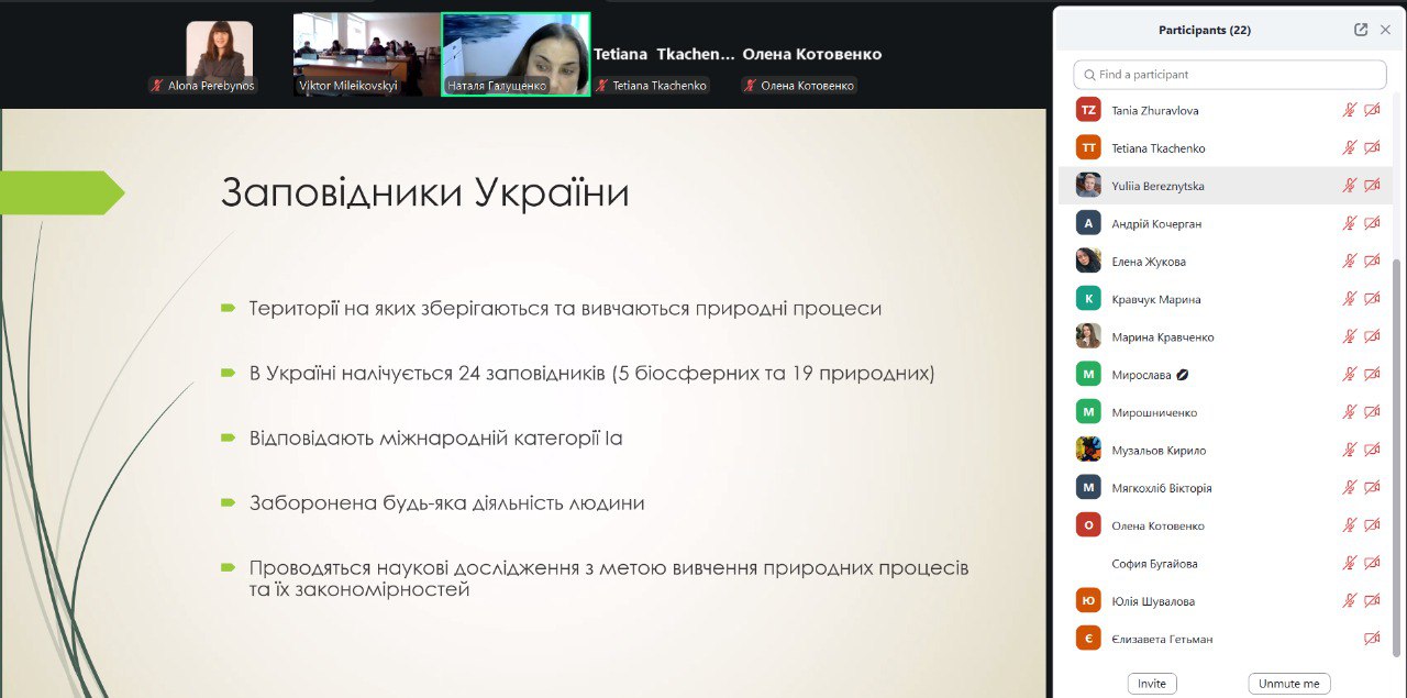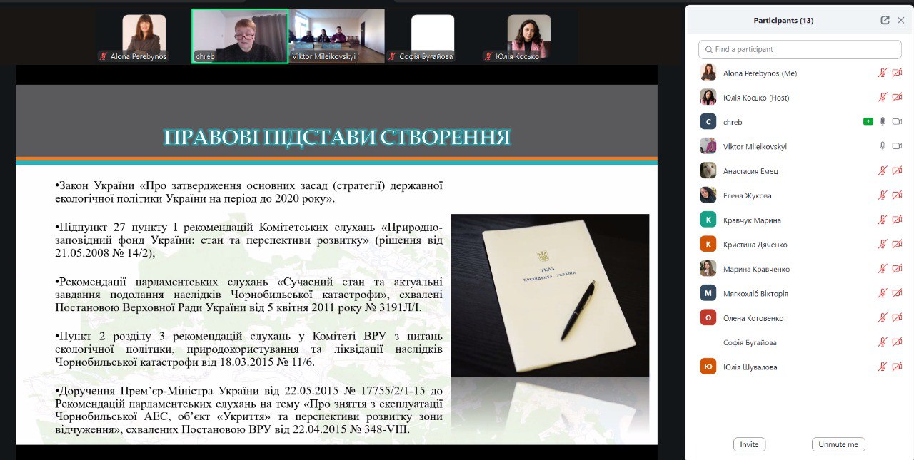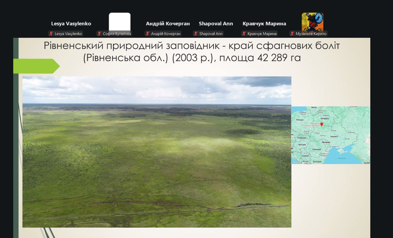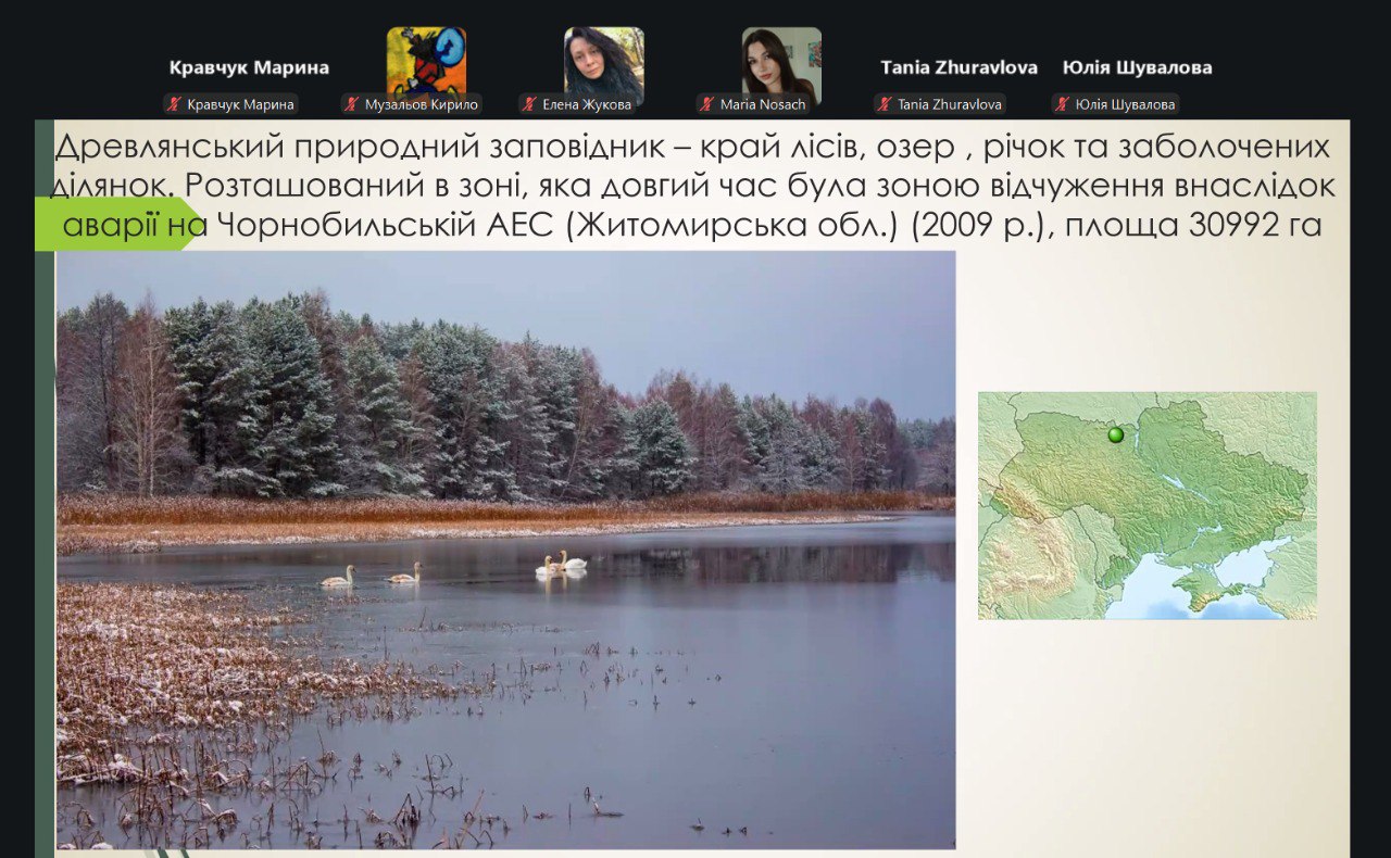 Під час онлайн-лекції присутні дізнались про історію створення та розвитку заповідної зони, особливості функціонування, флору та фауну, напрямки дослідження.