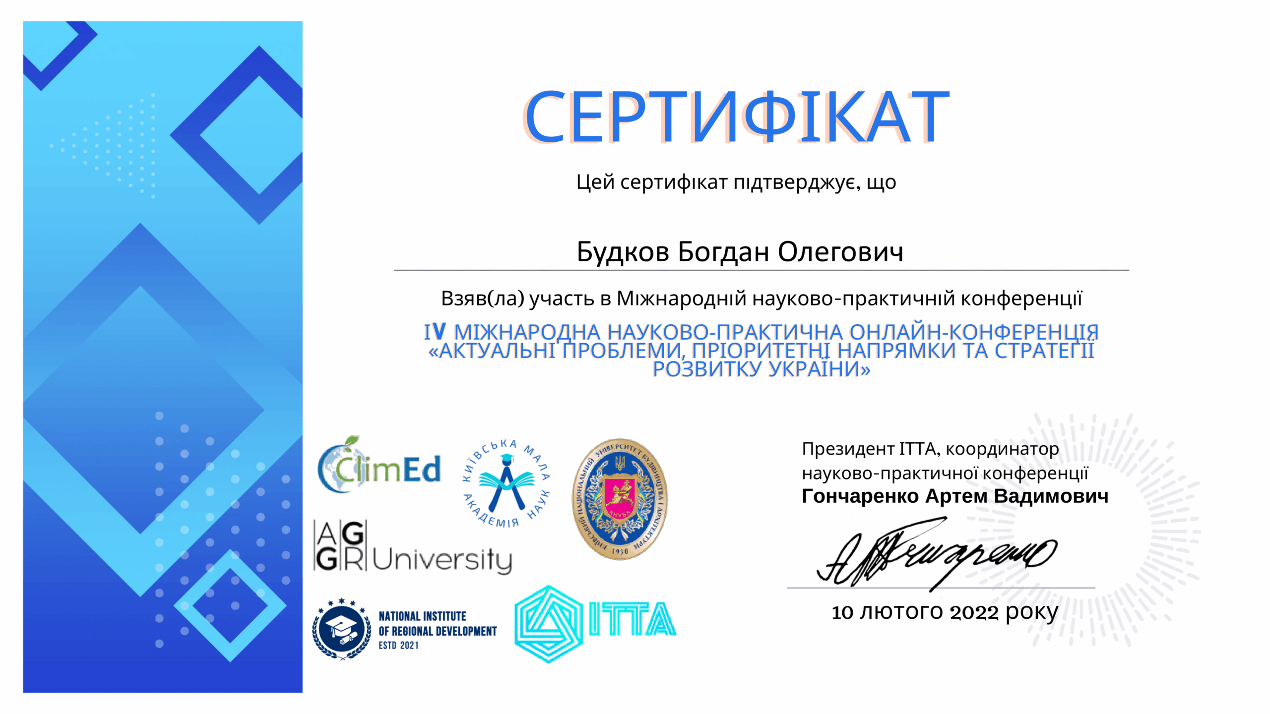 Дипломи, подяки, сертифікати за активну наукову та освітню діяльність